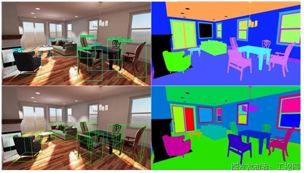 例如下图,就展示了Unity家居设计在其他参数不变的情况下,如何实现其中四种元素的随机化。相较于参考数据稀少的训练数据,Unity家居设计带有更多标签类型的数据可以拓宽CV的应用范围,进而更高效地帮助客户实现家居自动化开发。