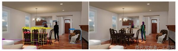 ▲Unity居家环境内的3D人体模型,左图:2D选框,右图:监测对象