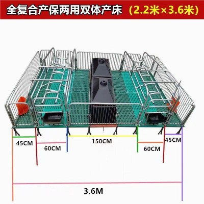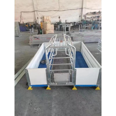 母猪产床,主体采用热浸锌管或喷漆管焊接,使其结构 合理,经济实惠,质量和寿命大幅提高,成为各大规模化养猪厂的 ,仔猪塑料地板,母猪球墨铸铁地板,扁钢大梁支撑。含母猪食槽,仔猪圆形补料槽,保温箱,电热板。