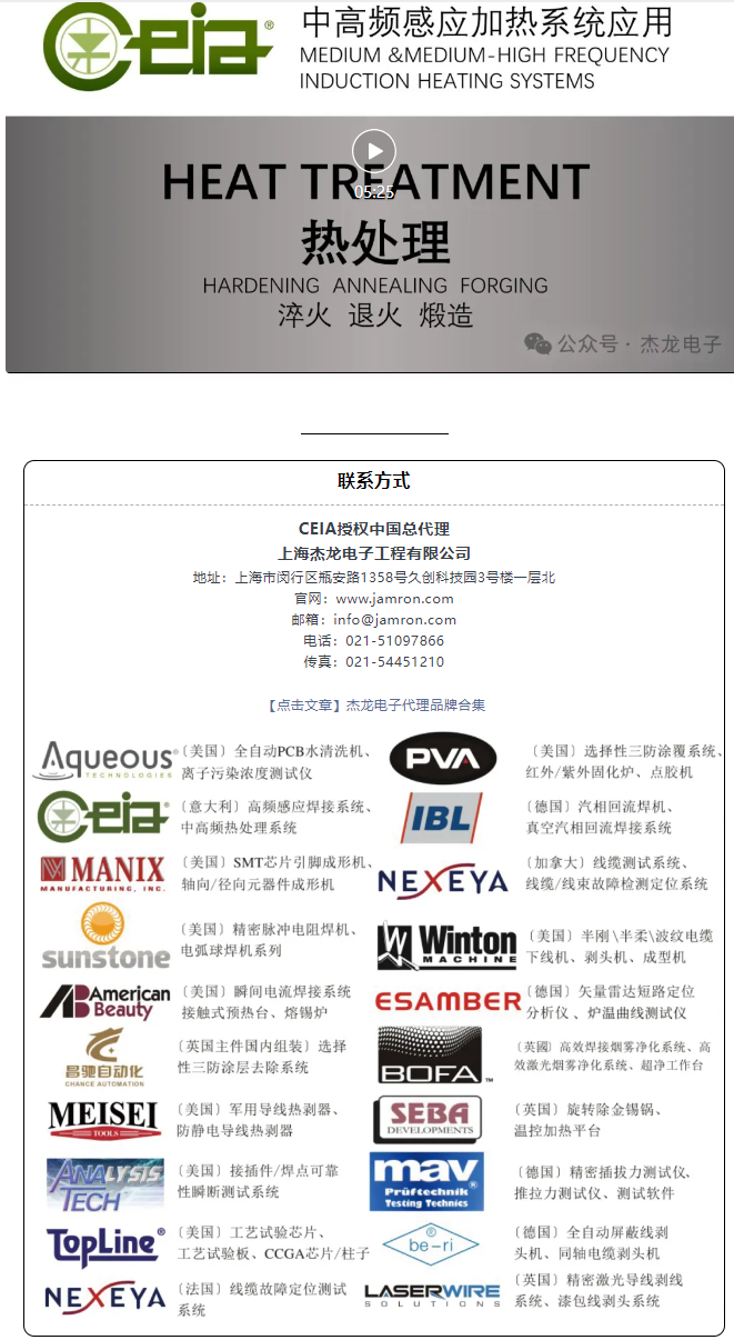 利用以上这些原理、特性,配合合适线圈的适用,CEIA感应加热系统可实现快速加热、局部加热、软钎焊、硬钎焊、淬火、退火、回火、热装配、热成型、煅造、熔炼等应用,其加热过程可控可重复,能源转化高效,提高生产效率与产品质量,具有用户安全性。