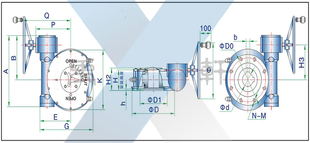 QDX3-S系列多部分回转型阀门手动装置是一款主要用于阀门驱动开关的一种驱动装置,起到连接传动的作用,箱体壳采用灰铸铁、球墨铸铁、铸钢、不锈钢材料,外观美观大方,体积小重量轻,设计合理输出转矩大,省力轻便。常用于阀门驱动,减速机驱动,风门驱动,闸门驱动,蝶阀,球阀,旋塞阀驱动等。上海禹轩生产的阀门手动装置具有耐磨,耐用,不卡等优的特点,欢迎来人到工厂实地考察选用。公司除了生产不锈钢蜗轮箱单级蜗轮箱、电动蜗轮箱、管网蜗轮箱、双级蜗轮箱、双级电动蜗轮箱、分离式蜗轮箱、出口型蜗轮箱、信号蜗轮箱、BA伞齿轮等类型的驱动装置,公司还生产工业阀门全系列。
