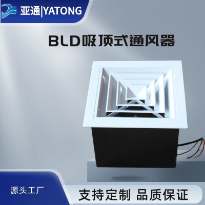 BLD房间吸顶式通风器特点:外形美观大方,噪声低实用、振动小、使用寿命长,所有部件采用防潮防锈材料制造,安装维护非常方便应用:会议室、餐厅、会客室、卫生间、浴室、等场所及各无窗房间的污浊空气、湿气、烟雾、尘埃起到良好的通风换气作用。BLD-I