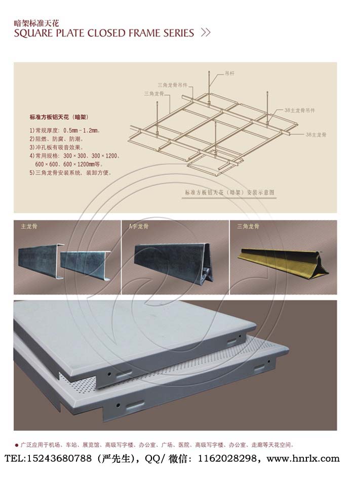 铝单板、铝天花、铝板幕墙、铝扣板、挂片天花、铝方通、条扣天花、格栅天花、方板天花、Z型勾搭龙骨、A字龙骨、型材方通龙骨、轻钢龙骨、烤漆龙骨、圆管天花