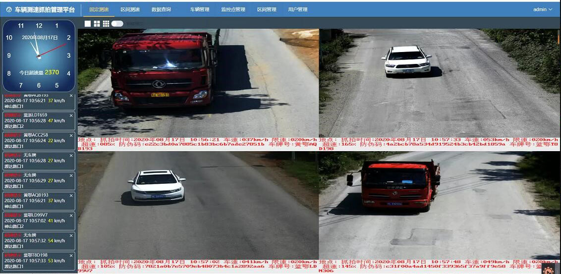 车辆超速抓拍提示系统采用嵌入式一体化的工业设计,结构紧凑,线缆连接隐蔽,设备的安全性强,所有设备全部内置在一个机箱内,形成一套完整的产品。整体设备模块化设计,维护方便简单,采用的高清晰AI智能摄像机,配合高清镜头传感器,设备成像清晰度高,足以满足各种园区需要。在抓拍软件上主要由图片抓拍模块、动态视频监测工作模块、窄波雷达测速模块、自动传输模块,动态显示等模块等组成。