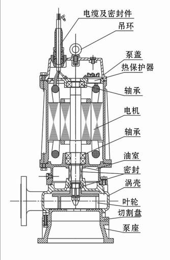 三利·WQ/S型带刀切碎式潜水排污泵结构图: