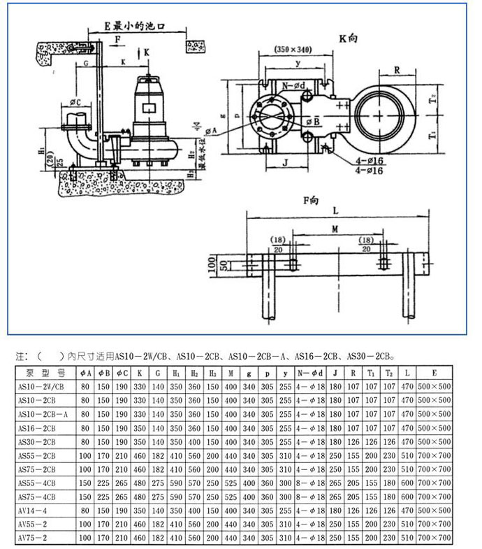 ☆. 对于AS/AV型撕裂式潜水排污泵因为需要输送的介质是一些含有固体物料的混合液体,这个问题使得在密封、电机承载能力、轴承布置及选用等方面的要求比一般的泵要高,因此在选型时,一定要了解清楚密封承载能力。