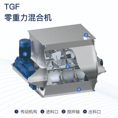 双轴反向搅拌系统:配备两根平行搅拌轴,通过相反方向旋转形成物料抛洒运动,使颗粒在筒体内形成“失重”状态,提升混合效率。