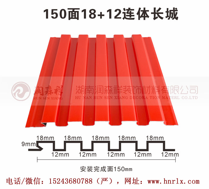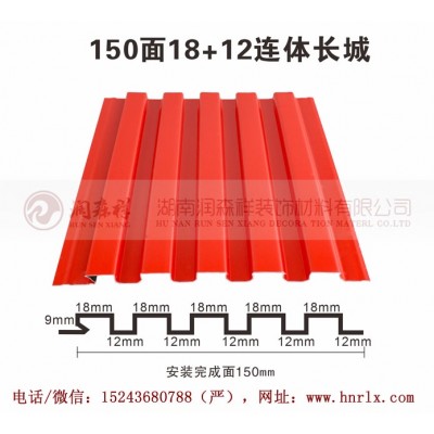 长城板波浪板门头装饰材料墙面装饰。一般用于连锁店铺门头设计装修、外墙装饰、大堂门面、大型建筑装饰、商业空间设计、酒店、商场等场所,能够创造出独特的视觉效果,提高整个店铺的档次和形象。 波浪板款式多样,有内凹、半圆、凹槽等,支持客户定制,宽度固定,长度任意定制最长做到6米,可随意选择颜色。