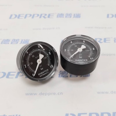 美国艾默生R412004417压力表属AVENTICS™ PG1 - SAS系列,为Bourdon管式后端口压力表,符合EN 837 - 1标准,适配ATEX。其精度等级2.5,压缩空气连接为G 1/4,标称直径50mm,量程值0.2,应用范围0 - 8bar,显示范围0 - 10bar,工作压力0 - 10bar,适用环境温度 - 40℃至60℃,介质为压缩空气,背景色黑,主刻度单元(外)为bar、色白,副刻度单元(内)为psi、色灰,指针色白,重量0.09kg。