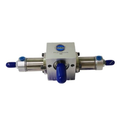 美国Bimba缤霸 PT-017090-A1R 是一款 90° 回转气缸,属于 Pneu-Turn® 系列。缸径约 1-1/16",90° 旋转角度,双作用驱动,可输出约 3 N·m 扭矩。阳极氧化铝本体,内置可调缓冲与角度微调机构,端面提供标准 NPT 气口及磁簧安装槽,可加装传感器实现旋转到位信号。产品出厂预设 80 PSI(0.55 MPa)运行,-20 ~ 80 ℃ 工业环境下免维护寿命 ≥ 1000 万次循环,广泛用于装配、包装、检测工位的工件翻转、分度与定位。