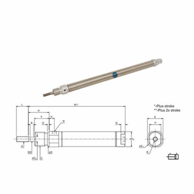 连接类型 2 x G1/8“ 螺纹气动端口M8 x 1.25(公)螺纹杆