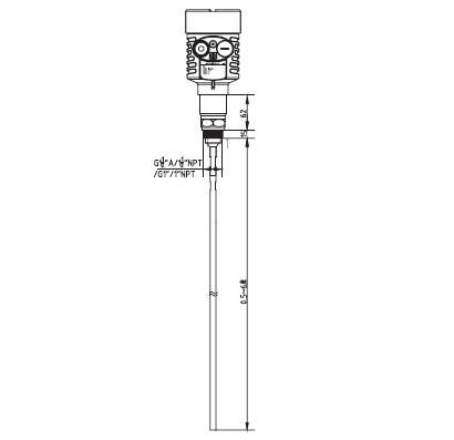 SKGW51杆式导波雷达物位计是基于时间行程原理的测量仪表,雷达波以光速运行,运行时间可以通过电子部件被转换成物位信号。探头发出高频脉冲并沿缆绳传播,当脉冲遇到物料表面时反射回来被仪表内的接收器接收,并将距离信号转化成物位信号。