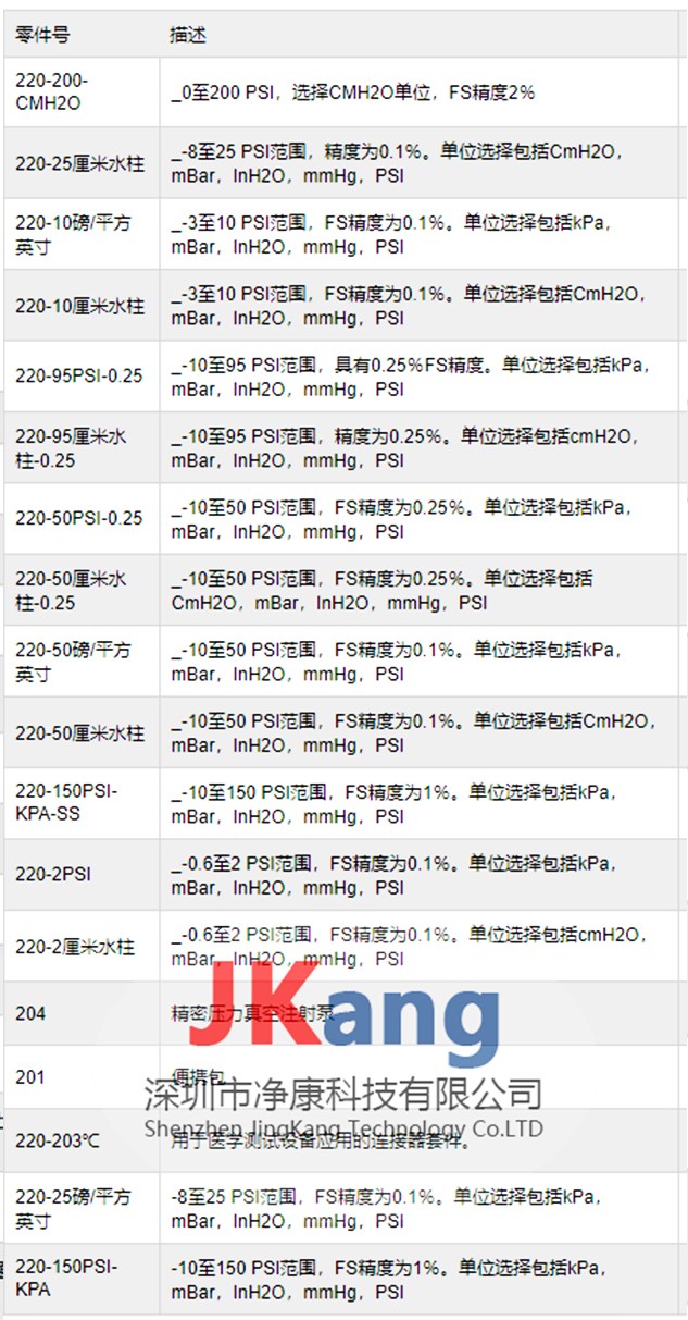 | 模型范围 模型范围220-2cmH 2 ö-0.6至2 PSI 220-2PSI-0.6至2 PSI220-10cmH 2 O-3至10 PSI 220-10磅/平方英寸-3至10 PSI220-25cmH 2 O-8至25 PSI 220-25磅/平方英寸-8至25 PSI220-50cmH 2 O-10至50 PSI 220-50磅/平方英寸-10至50 PSI220-95厘米高2 O-10至95 PSI 220-95磅/平方英寸-10至95 PSI220-200cmH 2 O 10至200 PSI 220-150PSI-KPA 2-10至150 PSI |