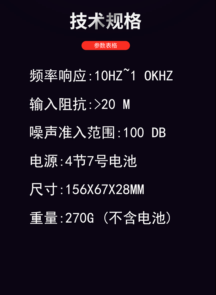 * 设计目的是希望以低成本来快速测得超出承受能力范围的声音和噪音发生部位。
