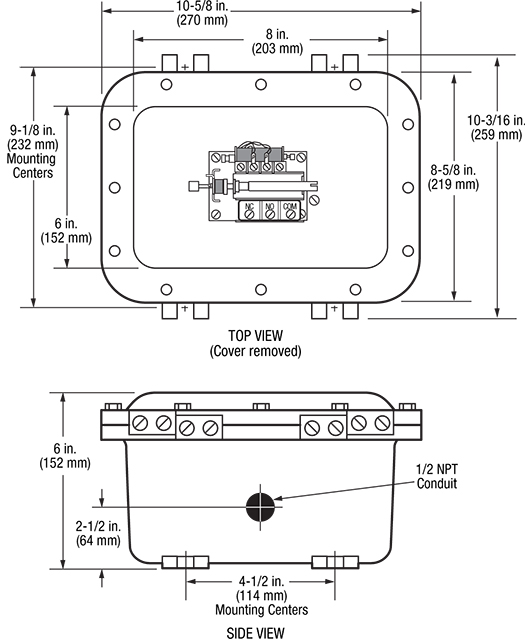 VS2EXR外壳:底座安装,防爆铝合金外壳;符合 IP54 规格;Class I, Division 1, Groups C & D 危险场所