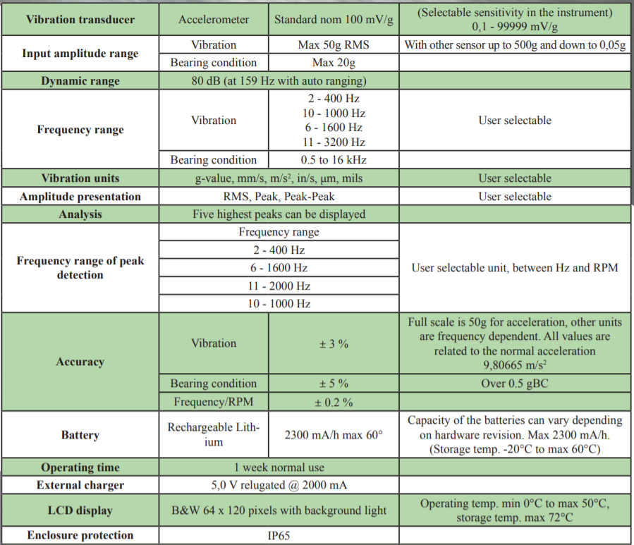 瑞典VMI测振仪 VIBER X2™ 规格: