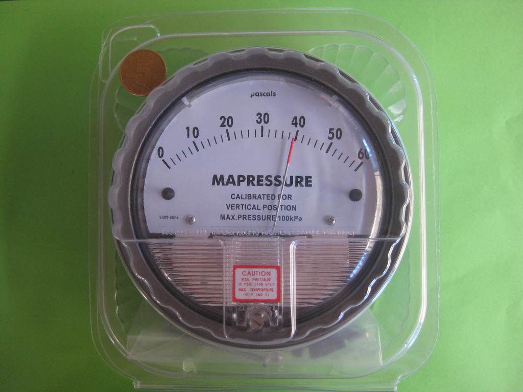 二,1KPA的量程,包装可选吸塑及纸盒,图一为吸塑包装(吸塑包装每装为24只,纸盒包装为20只,外箱订时可要求出口型蜂窝箱,对表的整个保护超好)