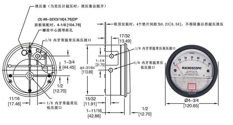 ·过程连接:高压和低压孔均为1/8″椎管螺纹,两组(侧面和背面各一组)