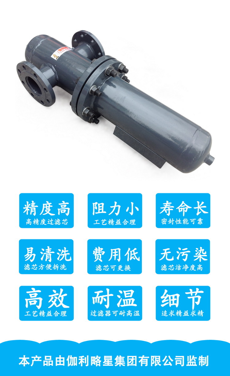 精密过滤器具有纳污能力高、耐腐蚀性强、耐温好、流量大、操作方便、使用寿命长、没有纤维脱落等诸多特点。