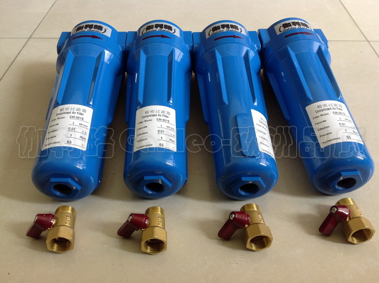 精密过滤器为了能达到高精密过滤品质,采用了多层不同过滤材质,其中包含了硼矽酸盐的纤维层、玻璃纤维层、活性炭纤维层、多层不织布层及不锈钢网层。唯有如此才能达到无油,无杂质高品质空气。能滤除小至0.01μm的油雾及碳氢化合物,达到最低残油含量仅0.003ppm,不含水分、灰尘和油,无臭无味。 起最后一道过滤作用,供一些必须使用高质量高质量空气的单位,如食品工业、呼吸、无菌包装等。