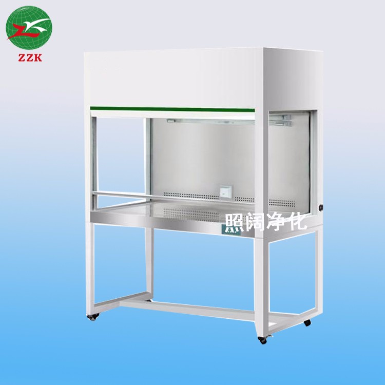 一水平层流洁净工作台介绍: 净化工作台是一种提供无尘工作环境的净化设备,具有使用方便、结构简单、效率高,它已被广泛使用于 电子、国防精密仪器、仪表、制药等各个工业和科研部门。 二、工作原理: HS型净化工作台是一种水平流型局部净化设备,室内空气经过粗效过滤网后,由低噪音风机压入静压箱, 再经高效过滤器均匀流出,形成洁净气流以均匀的风速通过工作区将尘埃带走,形成高洁净度工作环境。 三、结构: 本产品由粗效过滤网、风机、静压箱、以及高效空气过滤器等部分组成,是一种水平层流局部空气净化 设备。该箱体采用钢板折弯、拼装、焊接而成。整个箱体经防锈处理后表面喷漆(塑),电器控制系统 在下部箱体内。 四、技术参数: 一、先进性与特点: 1、水平流形,开放式台面,操作方便。 2、采用可调风量风机系统,轻触键调节电压大小,保证工作区风速始终处于理想状态。 3、工作区台面为不锈钢材质。 工作区尺寸(单人)HS-840: 760W×530D×600H(mm) 工作区尺寸(双人)HS-1300: 1220W×530D×600H(mm) 二、技术参数: <1> HS-840型单人 1.洁净度:对于粒径≥0.5的尘埃≤3.5颗/升(100级) 2.平均风速≥0.45m/s 3.噪声≤62dB(A计权) 4.振动≤3um(X、Y、Z三向) 5.照度≥300Lx 6.净化工作区尺寸(宽×深×高):820×480×600 7.外形尺寸(宽×深×高**大功耗:0.4KW 9.电源:AC 单相220V 50HZ 10.重量:110Kg 11.操作人员:单人 12.高效过滤器尺寸:820×600×70×① <2>HS-1300型双人 1.洁净度:对于粒径≥0.5的尘埃≤3.5颗/升(100级) 2.平均风速≥0.45m/s 3.噪声≤62dB(A计权) 4.振动≤3um(X、Y、Z三向) 5.照度≥300Lx 6.净化工作区尺寸(宽×深×高):1680×480×600 7.外形尺寸(宽×深×高**大功耗: 0.8KW 9.电源: AC 单相220V 50HZ 10.重量: 200Kg 11.操作人员:双人 12.高效过滤器尺寸: 820×600×70×②