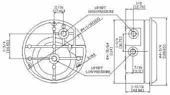 过程连接:高压和低压孔均为1/8″锥管螺纹,两组(侧面和背面各一组)