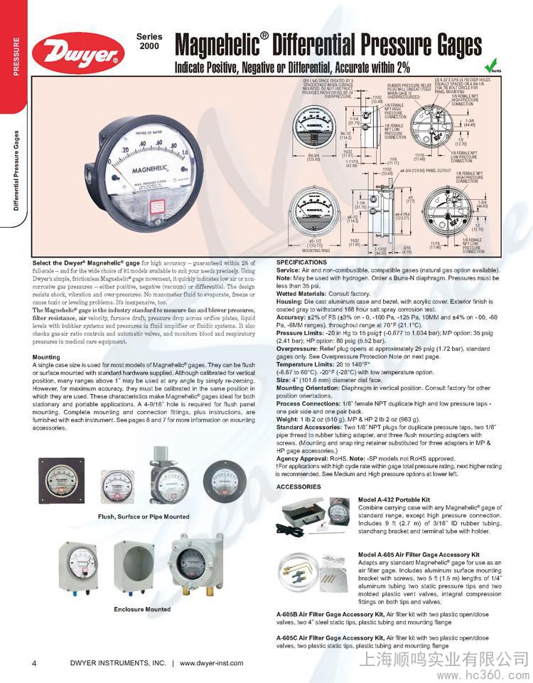 供应DWYER2000-250pa压差表