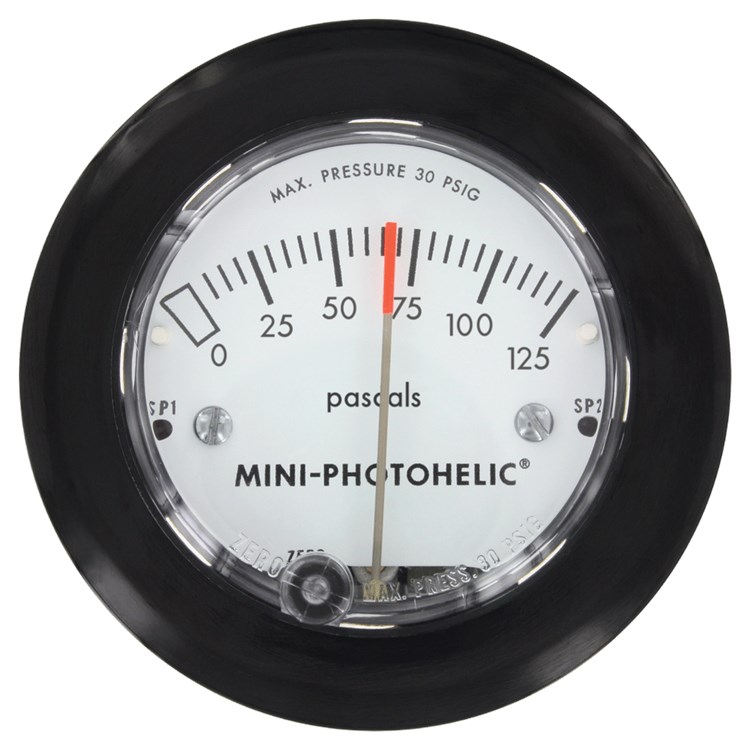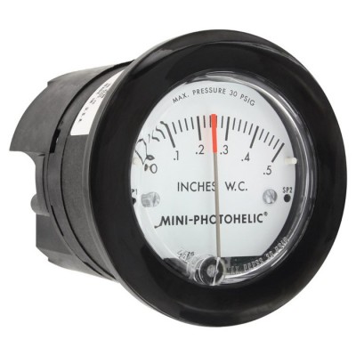 The Series MP Mini-Photohelic? Differential Pressure Switch/Gage combines the time proven Minihelic? II differential pressure gage with two SPDT switching set points. The Mini-Photohelic? switch/gage is designed to measure and control poSITIve, negative, or differential pressures consisting of non-combustible and non-corrosive gases. Gage reading is independent of switch operation. Switching status is visible by LED indicators located on the front and rear of the gage. Set points are adjusted with push buttons on the back of the unit