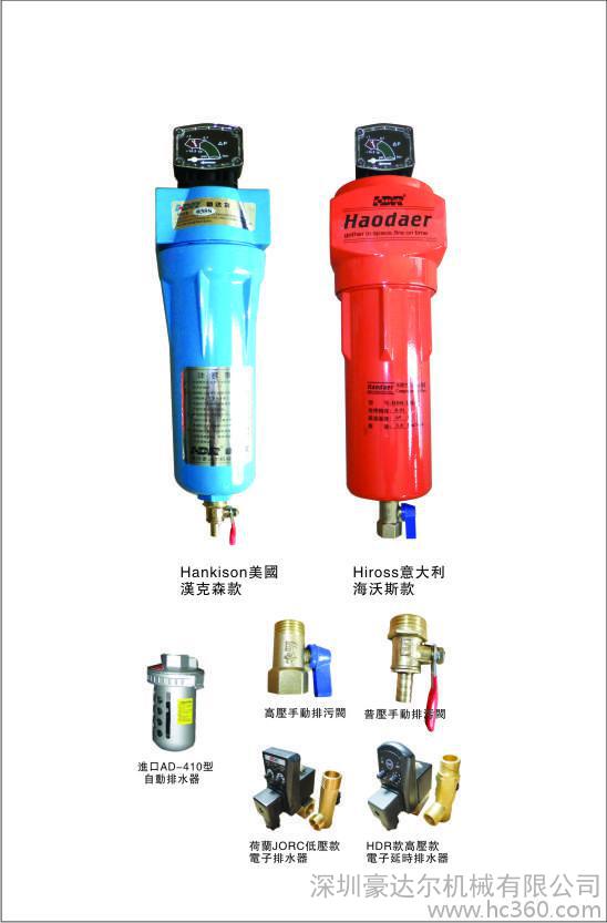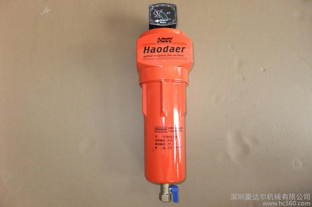 “豪达尔”牌精密过滤器管身采用铝合金压铸而成,过滤器滤芯采用韩国玻璃纤维精工制做而成,它能有效的去除压缩空气中的水份、油污和其它杂质过滤精度达到0.01PPM,精密过滤器的滤芯使用寿命长达4000个小时。