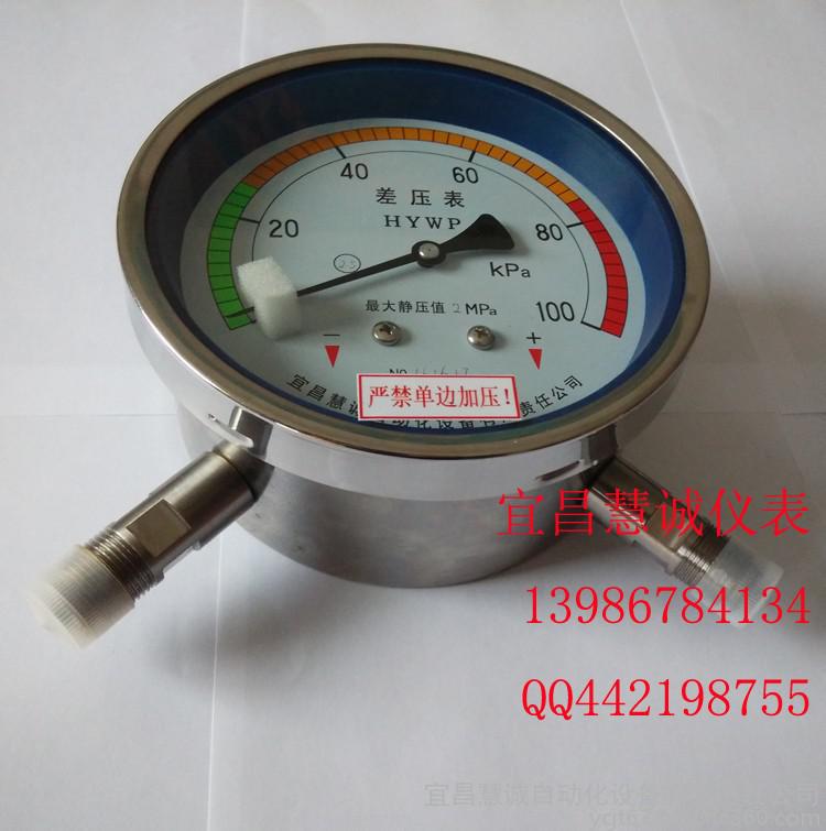 宜昌慧诚(详情咨询0717-6031391,6487246,13986784134)优价销售的HYWPCYW-152B,CYW-100B,CYW-150B,CYW-153B等系列不锈钢差压表适用于化工、化纤、冶金、电力、核电等工业部门的工艺流程中测量各种液(气)体介质的差压、流量等参数。 不锈钢差压表 结构全部采用不锈钢制成,其中的测量系统(双波纹管及连接部件)、导压系统(包括接头、导管等)采用特种奥氏体不锈钢制成,具有较强的耐腐蚀及抗工作环境侵蚀影响。仪表整体结构设计合理、工艺先进、具有体积小、重量轻、稳定性好、使用寿命长、外观新颖、适应性强等优点。仪表接头的连接形式有平行式(可直接与三阀组连接)和八字斜式两种,能够适应不同用户的配套安装。特殊量程和特殊压力指示面板可为客户提供定制服务。