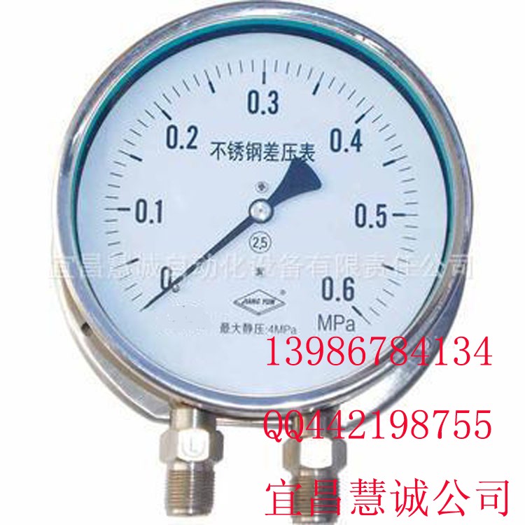 宜昌慧诚自动化设备有限责任公司(详情咨询0717-6031391、6487246、7876066)优价生产的HYWP系列差压表、差压计外壳为精压模不锈钢结构。该表的最大优点是将测量区域按绿、橙、红三个彩带区域划分,便于使用者一目了然的区分启动区、测量区、报警区。本产品有权威机构认证的生产标准备号。来电、量大价格可电议优惠。