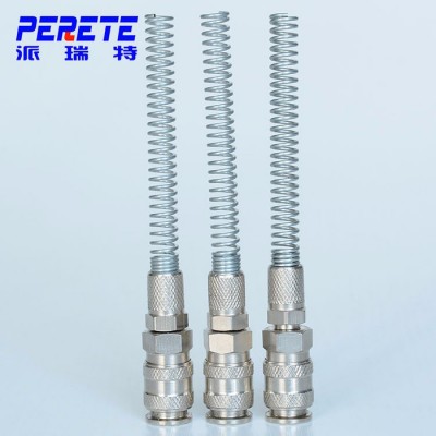 气动快速接头是一种主要用于空气配管、气动工具的快速接头,不需要工具**能实现管路连通或断开的接头不链接时——当母体的套圈移到另一端时,不锈钢珠自动向外滚动,子体因母体与子体共同阀门弹簧力的作用力运作下而断开,子体与母体的阀门各自闭合,阻止流体流动。选定 1、流体的种类、温度(请选定适合流体的种类、温度的本体材质与密封材质的快速接头) 根据流体,适合的本体材质、密封材质是不同的批发自锁式迷你型液压快速接头 带螺丝保护管气动接头 微型气动接头 21号迷你快速接头。例如,快速接头是空气的。推荐钢铁制的,是水的则选黄铜的或者不锈钢制的。 2、液体的压力(请选定适合流体压力的耐压性能的快速接头) 流体的压力也是选定快速接头的关键。油压用的快速接头是5.0Mpa(51kgf/cm?)-68.6Mpa(700kgf/cm?)之间形成系列化,相应于耐压特性,快速接头的构造也是不同的。 3、自动开关阀门的构造(请选定适合配管用途的阀门构造的快速接头) 对于阀门的构造,有两路开关型、单程开关型及两路开放型。批发自锁式迷你型液压快速接头 带螺丝保护管气动接头 微型气动接头 21号迷你快速接头由于在分离时除两路开关型以外,有流体从配管内流出。所以请注意。 4、快速接头的使用环境(请选定适合使用环境的构造、材质的快速接头) 结合使用环境的湿度条件、尘埃的状况,以及容易腐蚀等使用环境,来考虑选定快速接头的种类、本体材质、密封材质。 5、确认选择的快速接头连接螺纹要一致 在有不同品牌产品的使用过程中,是同一品牌的阴头和阳头配合使用,如果一定要交叉使用,批发自锁式迷你型液压快速接头 带螺丝保护管气动接头 微型气动接头 21号迷你快速接头使用前咨询产品供应方的技术人员,确认好之后再行使用。 6、安装的形状、尺寸(请在确定形状、尺寸后订购产品) 请确定快速接头的型号和材质,并指定相应于配管特性的装配形状及尺寸。请注意尺寸是与流体流量相关连的。批发自锁式迷你型液压快速接头 带螺丝保护管气动接头 微型气动接头 21号迷你快速接头