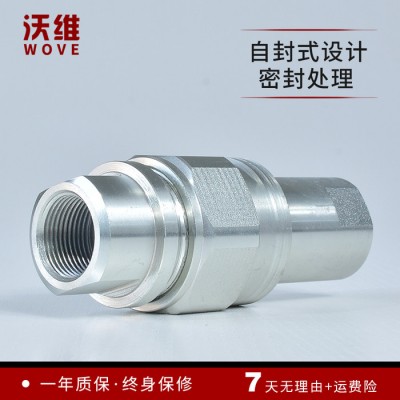 2、省油:折断油路时,快速接头上的单向阀可封闭油路,油不会流出,避免油液、油压损失。 3、环保:快速接头折断和连接时,油不会洒漏,保护环境。 4、设备化整为零,方便运输:大型设备或是需要便于携带的液压工具,使用快速接头分拆后运输,到达目的地后再组装使用。5、经济:以上各种优点都为客户创造了经济价值。