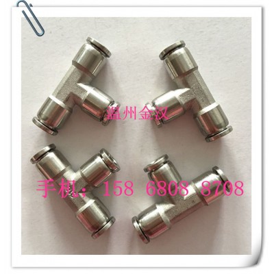 快插快速卡接气管接头T型三通接头插外径10MM软管不锈钢