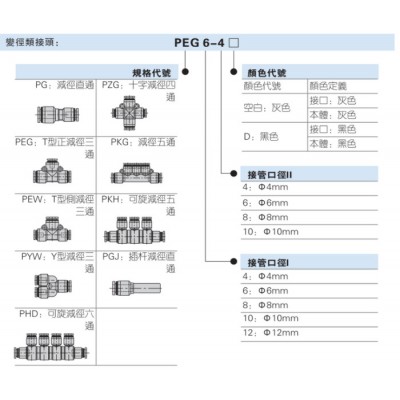 规格:PEG6-4/8-6/10-8/12-8/12-10
