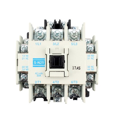 日本三菱接触器S-K20交流接触器,S-K交流接触器广泛用作电力的开断和控制电路。 S-K交流接触器利用主接点来开闭电路,用辅助接点来执行控制指令。 主接点一般只有常开接点,而辅助接点常有两对具有常开和常闭功能的接点,小型的接触器也经常作为中间继电器配合主电路使用。 从而起到远程控制或弱电控制强电的功能.
