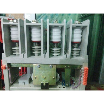 本产品体积小、重量轻,采用国际流行的上下布置的组装式结构方式,使用维护方便,易于组成F—C回路成套设备。真空灭弧室的动导电杆与下出线端子间用软连接连接,构成主电路通路。绝缘子把动导电杆与驱动机构连接起来,并对地绝缘。绝缘子的高压侧与真空灭弧室动导电杆的内螺纹连接,并与软连接固定在一起,绝 缘子的另一侧连接在操动机构上。电磁铁驱动回转轴带动真空灭弧室动触头执行分合动作。