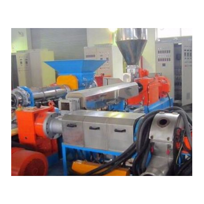 1、将经过破碎的橡胶颗粒先投入到锥双喂料机里面再进入GLS-上阶平行双螺杆挤出机