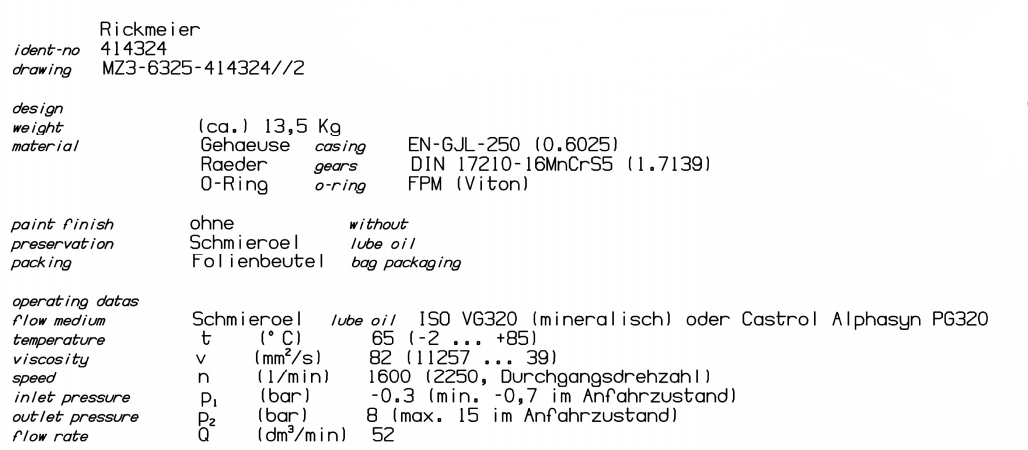 德国RICKMEIER 齿轮泵405057 R35/40 FL-Z-W-FSAE-R-SO