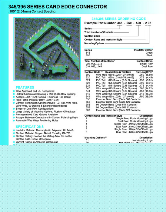 Card Edge卡缘连接器345/395系列---2.54mm间距