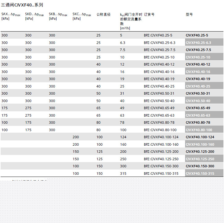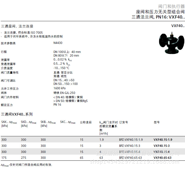西门子VXF40系列三通法兰阀 技术参数表N4430