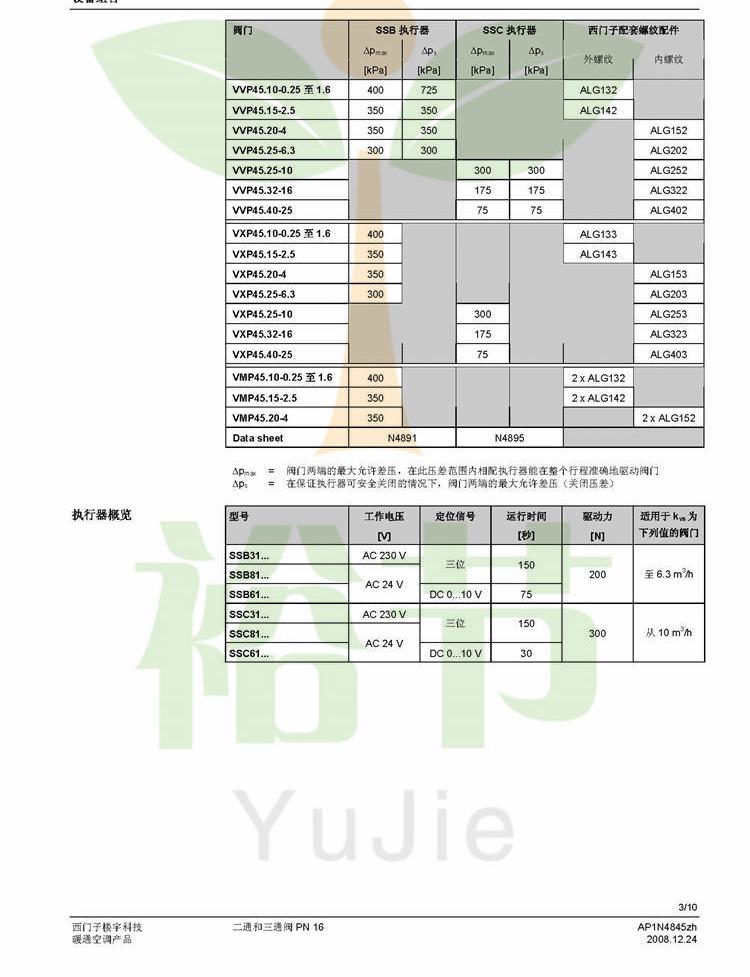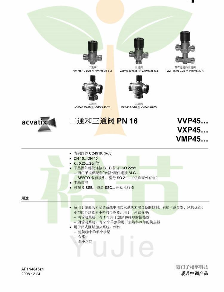 SIEMENS西门子 VXP45.40-25 外螺纹三通调节阀电动水阀DN40