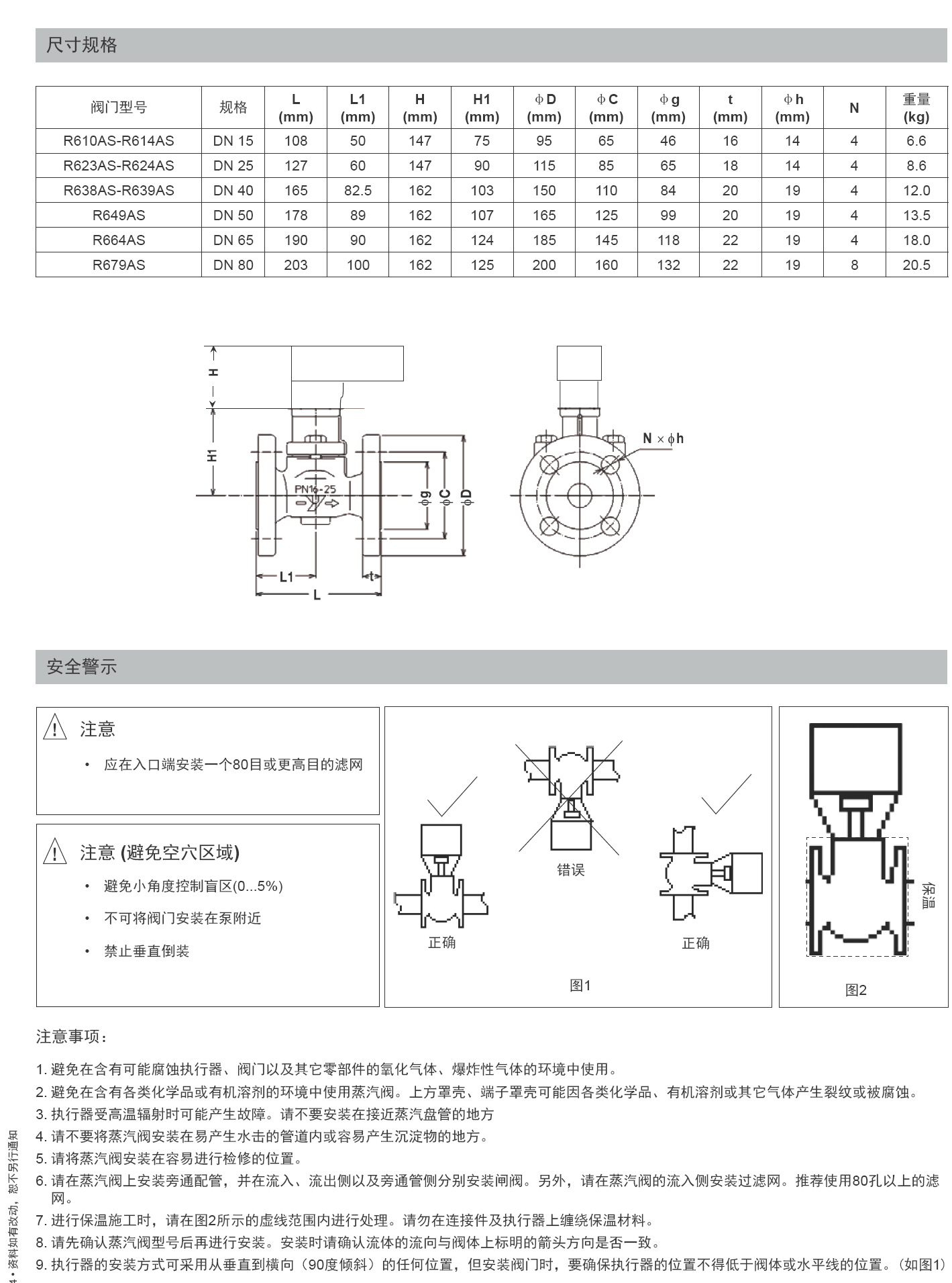 R623AS R624AS R638AS R639AS 系列两通蒸汽阀又等百分比特性,由于楼宇、建筑、酒店、工厂、药厂、医院可用于冷水、热水和蒸汽的调节控制应用,如加湿器、热交换器、区域供热等等。