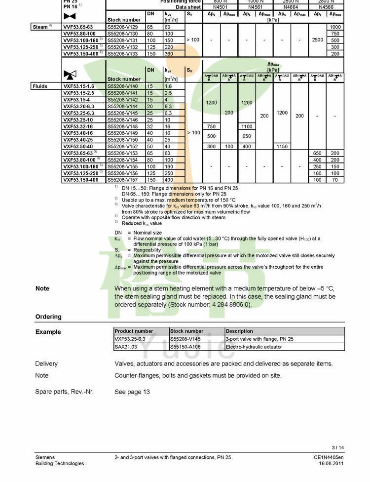 siemens西门子 VXF53.20-6.3 法兰三通调节阀电动蒸汽阀DN20