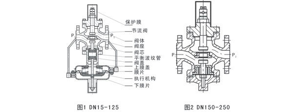 当被控介质流体阀前压力P1首先经可变节流阀再经调节阀阀座流向阀后,可变节流阀端平面与阀座上部通径d0形成柱状的节流面积d0F,其值d0F=S·π·d0,当小于调节阀的通径截面时,流体将被节流。在d0的近二侧将形成一定的压力差△PS=P1-PS,称为有效压力。根据流体力学的伯努里方程可确定流体的流量Q=a产品型号ZZLP-16、25、40(软、硬密封型)Z:执行器大类 Z:自力式阀 L:流量调节阀 P:单座阀 16:PN1.6MPa