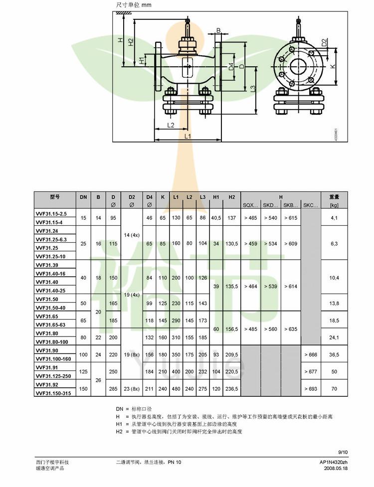 西门子 C/VVF31.25 法兰二通调节阀温控阀比例积分阀门DN25