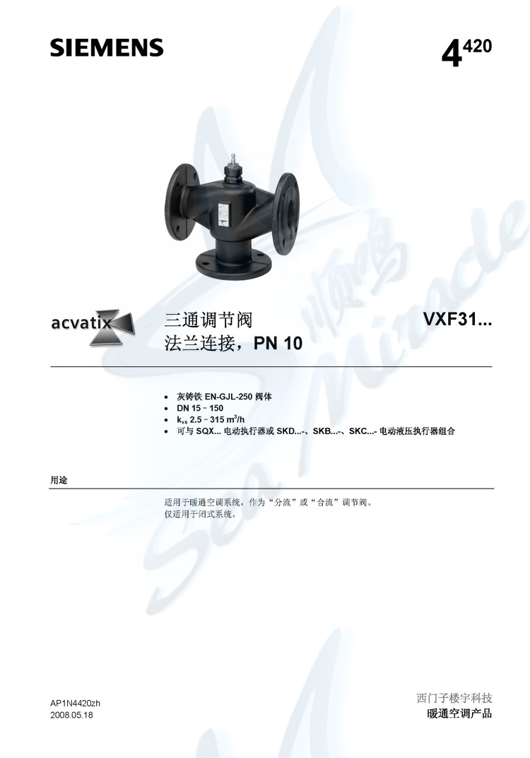 西门子C/VXF31.100-160法兰三通调节阀产品外包装图片如下: