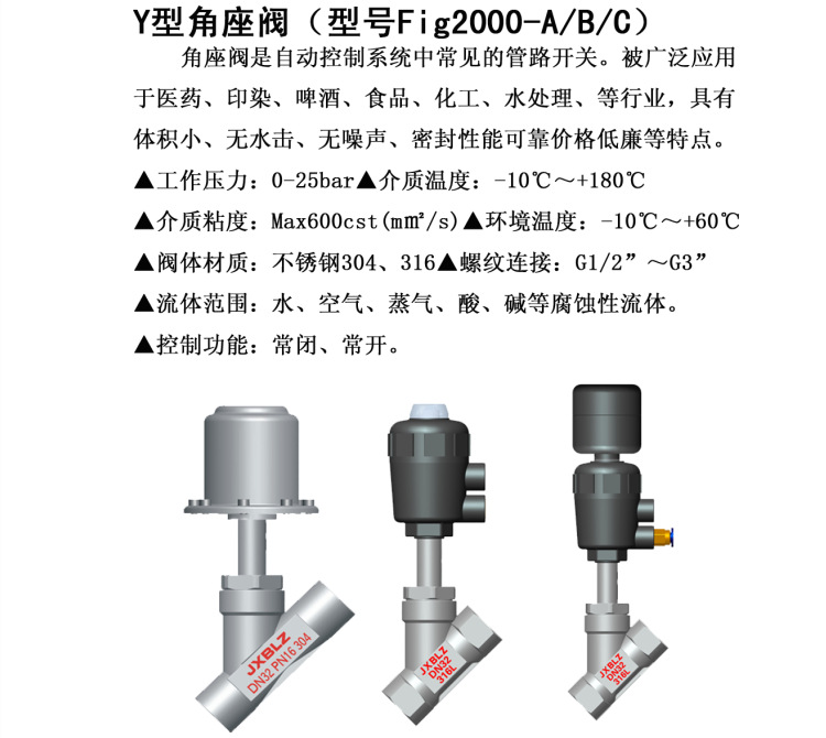 角座阀是自动控制系统中常见的管路开关。被广泛应用于医药、印染、啤酒、食品、化工、