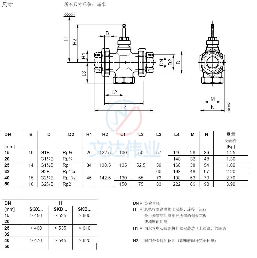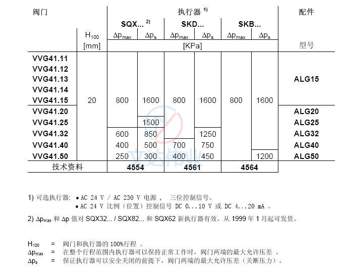VVG41.40电动二通阀阀体与执行器匹配表
