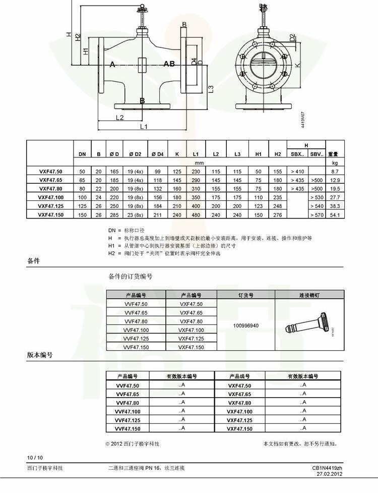 SIEMENS西门子 VXF47.50 法兰三通调节阀 线性阀 电动阀DN50